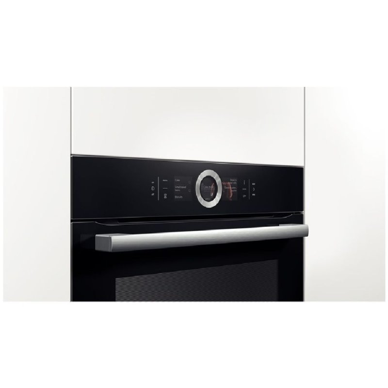 Духова шафа BOSCH HBG 636 BB1 це сучасна електрична духова шафа з сенсором управління PerfectBake і термодатчиком PerfectRoast для отримання відмінних результатів здобної випічки, приготування м'яса та риби. У даному приладі чудово реалізовані нові технології, сучасний дизайн та велика кількість програм нагріву. У цій моделі HBG 636 BB1 реалізована сучасна технологія 4D-нагріву завдяки вбудованому вентилятору на задній стінці духовки, який обертається поперемінно в різних напрямках, забезпечує рівномірний розподіл температури гарячого повітря по всій внутрішній частині духової шафи. Завдяки технології 4D-нагріву тепер можна розташовувати на різних рівнях листи і Ваші продукти будуть рівномірно готуватися з усіх боків. сенсорні перемикачі клас А з енергоспоживання дисплей конвекція гриль захист від дітей