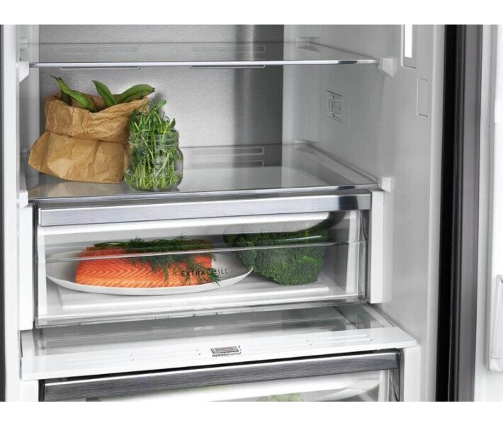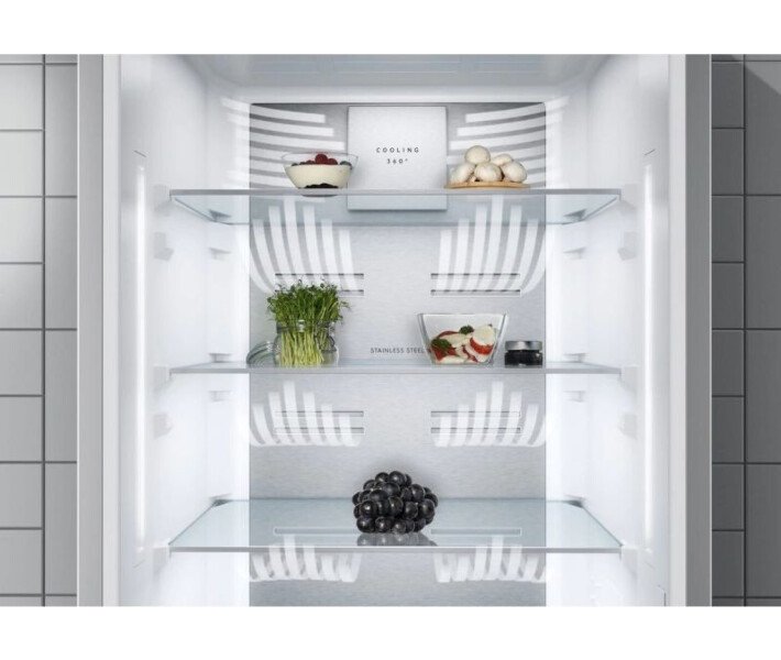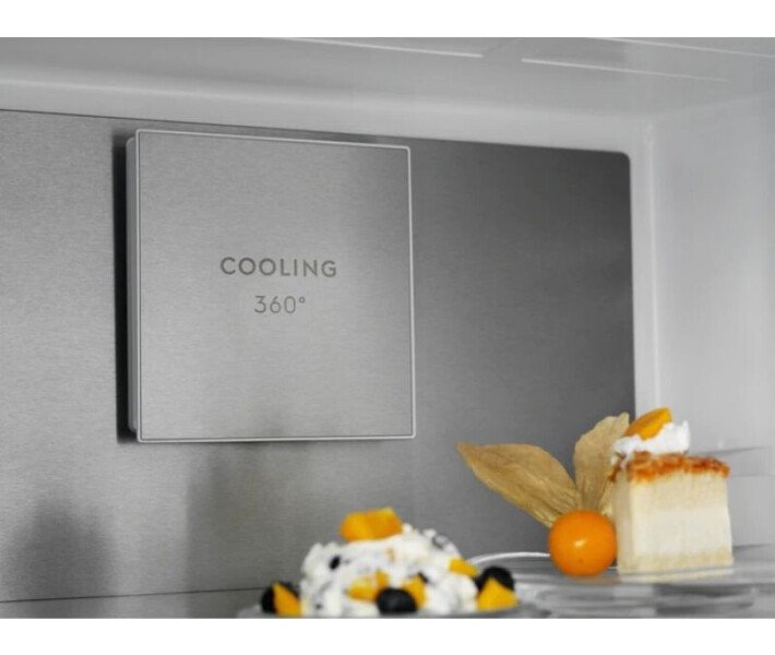 Інноваційна система охолодження Холодильник Electrolux RNT7ME34K1 має розроблену спеціально для високої ефективності систему Cooling 360. Вона забезпечує всередині камери холодильника постійну циркуляцію повітря. За рахунок такого повітряного потоку весь обсяг охолоджується рівномірно, і навіть якщо ви додасте всередину холодильника багато продуктів відразу, мікроклімат не порушиться. Покращена система розподілу холоду Задня стінка холодильника Electrolux RNT7ME34K1 виконана з нержавіючої сталі класу люкс. За рахунок цього передача холоду здійснюється набагато ефективніше, що дозволило підвищити ККД та допомогло знизити час, який потрібно на охолодження всього об'єму камери до заданої температури. Стильний елемент Дана модель відноситься до дизайнерського сімейства пристроїв DesignLine. Тому холодильник Electrolux RNT7ME34K1 виглядає чудово. У своєму мінімалізмі він гідний найвищої нагороди за зовнішній вигляд. Лаконічний фасад, чіткі лінії та форму, все спрямоване на підвищення функціональності та покращення зручності при використанні. Захист від висихання Проблема недорогих холодильників із системою NoFrost – це надмірне пересушування повітря. За рахунок цього продукти починають втрачати свою внутрішню вологу та висихати. Порушується їхня текстура та смак. Система TwinTech у холодильнику Electrolux RNT7ME34K1 вимірює не лише рівень температури, а й вологість. Тому ваші продукти отримають оптимальні умови зберігання і не губляться смакові та органолептичні властивості при тривалому зберіганні. Знижена температура У холодильнику Electrolux RNT7ME34K1 передбачений спеціальний відсік ExtraChill, температура всередині якого нижча, ніж у холодильній камері. Це ідеальне місце для зберігання свіжих м'ясних та рибних продуктів без ризику. Купити холодильник Electrolux RNT7ME34K1 ви можете, оформивши замовлення у нас на сайті, а також по телефону.