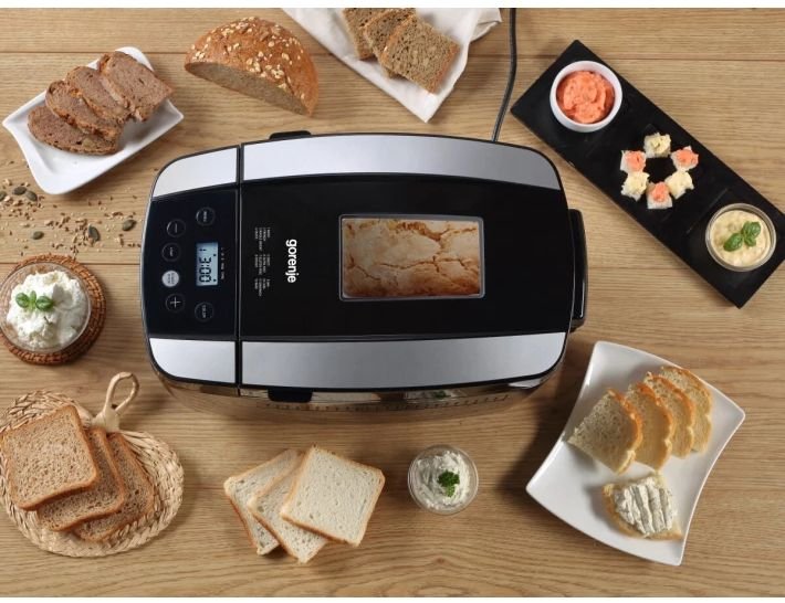 Смачний хліб з Gorenje Хлібопіч Gorenje BM1210BK готує смачний хліб та випічку на будь-який смак. 12 встановлених програм, серед яких є програми безглютенової випічки та приготування домашнього варення, допоможуть кожному знайти улюблений рецепт. Функція відкладеного старту дозволить приготувати хліб до заздалегідь певного часу. Свіжий хліб з ранку Хочете побалувати себе найніжнішою ще теплою випічкою з ранку? Немає нічого простішого. Завантажте інгредієнти в хлібопіч Gorenje BM1210BK, виберіть програму та встановіть час приготування таким чином, щоб хліб був готовий до вашого пробудження. Чи захотілося поспати довше? Функція StayWarm надовго зберігає випічку теплою та свіжою. Корочка на будь-який смак Вибирайте саме таку скоринку, яку любите, і не погоджуйтесь на компроміси. Хлібопіч Gorenje BM1210BK може сформувати на випічці світлу, середньо-золотисту або насичено-коричневу скоринку, достатньо лише натиснути на відповідну кнопку. Готуємо джеми Хлібопіч Gorenje BM1210BK приготує джем з будь-яких фруктів. Просто поріжте фрукти на шматочки, додайте трохи цукру та активуйте програму, і після її закінчення можете насолоджуватися яскравим смаком улюбленого домашнього варення. Випічка без глютену Gorenje дбає про тих, хто не може вживати звичайну випічку. Спеціальна програма безглютенової випічки враховує тонкощі приготування, адже безглютеновий хліб потребує більше часу на розстоювання та випікання.