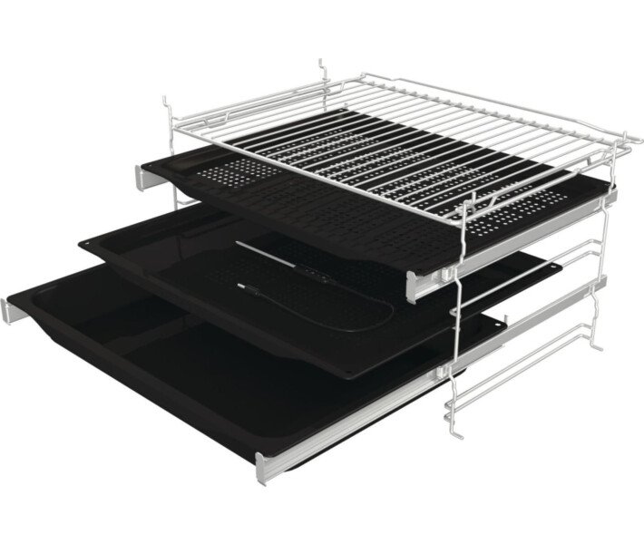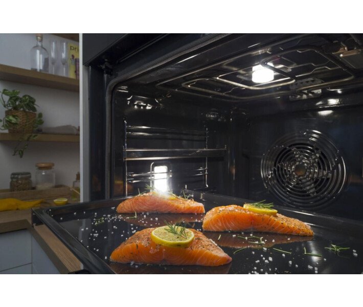 Gorenje: готуємо смачно та із задоволенням Електрична духова шафа BSA6747A04X з унікальною формою камери HomeMade, що імітує форму традиційної дров'яної печі, дає можливість випікати відразу на декількох рівнях. Оригінальне інженерне рішення збільшило об'єм камери до 77 літрів, завдяки чому у духовці можна готувати великі страви. Функція FastPreheat всього за 5 хвилин розігріє духовку і позбавить необхідності чекати. Швидке розігрів з FastPreheat Духова шафа Gorenje BSA6747A04X розігріває камеру до 200 градусів всього за 5 хвилин, а це на 30% швидше, ніж попередній нагрів у звичайній духовці . Коли камера нагріється, Gorenje подасть звуковий сигнал і активує світловий індикатор, сповіщаючи, що настав час приступати до готування. Рівномірне пропікання в духовці HomeMade Оновлений дизайн камери HomeMade, оптимальне розташування вентиляційних отворів та спеціальна конструкція нагрівача забезпечують швидке та рівномірне поширення нагрітого повітря всередині камери. Гаряче повітря вільно циркулює на кожному рівні, ідеально пропікає блюдо всередині та покриває апетитною скоринкою зовні. Готуйте кілька страв без змішування запахів на різних рівнях одночасно та заощаджуйте свій час та ресурси. Багато місця – більше смачних страв Інноваційне інженерне рішення дозволило розширити внутрішній простір камери та збільшити її обсяг до 77 літрів. Тепер ви можете готувати навіть дуже великі страви, адже вони готуються рівномірно, щоразу радуючи апетитним результатом. Завжди смачний результат Функція «Піца» з можливістю налаштування температури випікання до 300 градусів ідеально підійде для приготування піци, фокаччо, коржів та ін. Програма FrozenBake спеціально призначена для виготовлення заморожених продуктів і напівфабрикатів. PerfectGrill досягає кращих результатів випікання, поєднуючи великий і малий грилі: страви виходять хрусткими зовні та соковитими всередині. Для ніжних продуктів підходить функція повільного приготування GentleBake, яка поступово пропікає страву, зберігає всю вологу всередині, робить страву надзвичайно ніжною та соковитою.