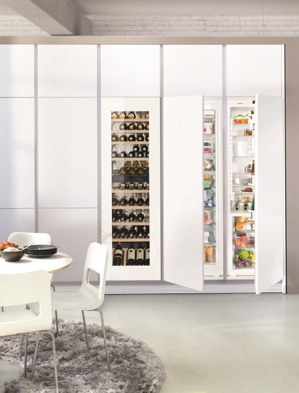 Для вбудовування в кухонні меблі без ручок ідеальним рішенням є дверцята, повністю виконані із ізольованого скла, з інноваційною технологією TipOpen. Від дотику вона відкривається на кілька сантиметрів. Якщо через 3 секунди дверцята не відчиняти далі, її закриє система SoftSystem. Сигнальний датчик відкритих дверей