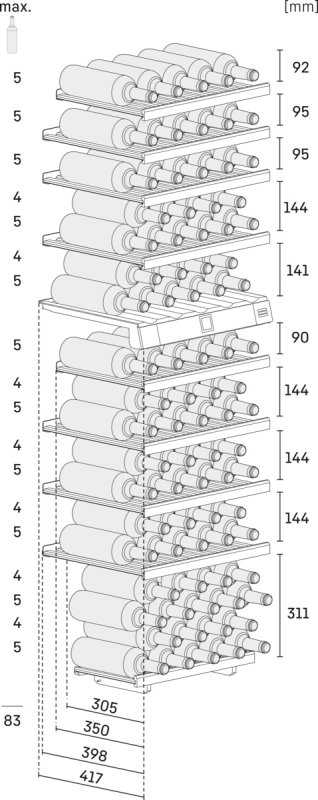 Презентаційна полиця призначена для демонстрації спеціальних сортів вин або оптимального зберігання відкритих пляшок. На ній можна розмістити до шести пляшок. Позаду та поруч із презентаційною полицею пляшки можуть зберігатися в горизонтальному положенні.