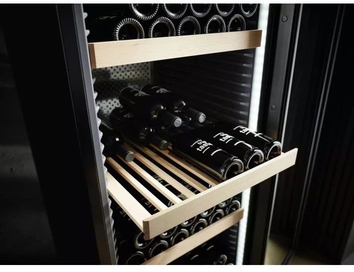 Вино повинно зберігатися в тиші та спокої. Тому в наших кліматичних винних шафах використовуються дуже тихі компресори спеціально розроблені компанією Liebherr і стійкі дерев'яні полиці з масиву бука. Завдяки цьому ваше вино визріває у тихій та спокійній обстановці.