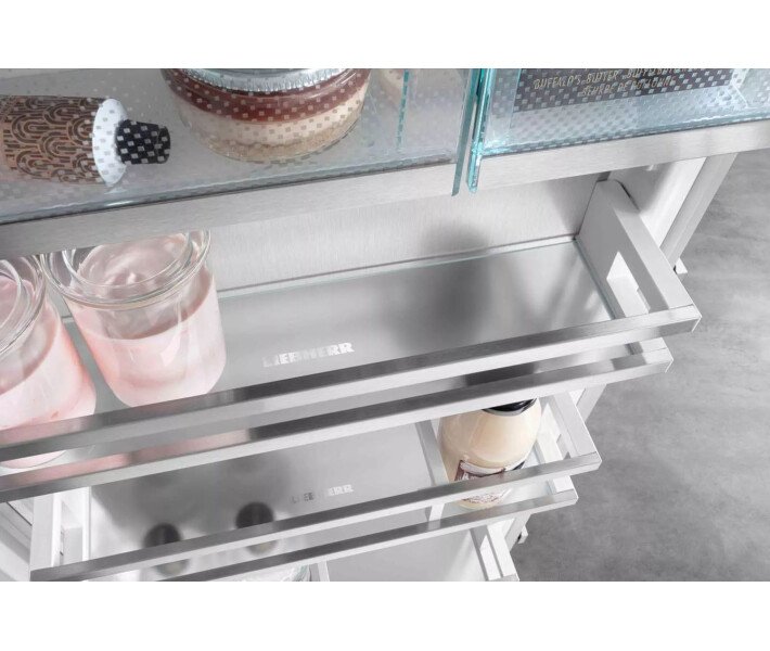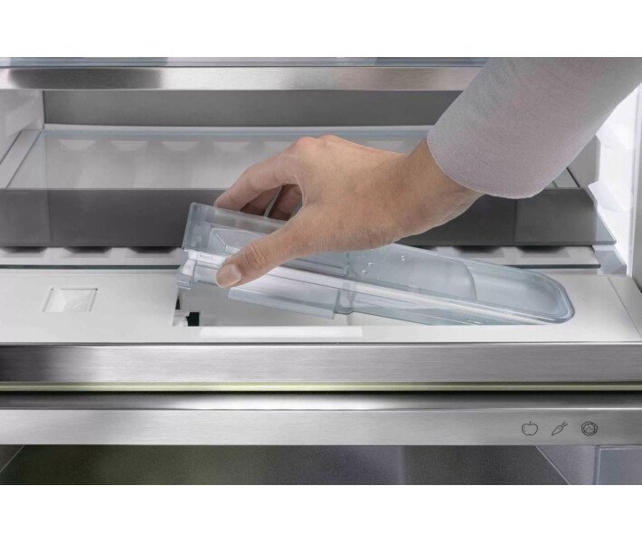 Поверхня SmartSteel робить очевидною високу якість вашого Liebherr і перетворює його на справжній дизайнерський предмет меблів. Горизонтальне шліфування ідеально виділяє нержавіючу сталь і надає поверхні шовковистого блиску та приємного тактильного відчуття. Покриття Antifingerprint зменшує видимість відбитків пальців і легко очищається.