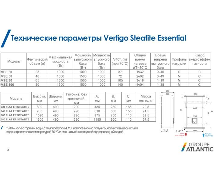 Описание Бойлер Atlantic Vertigo Steatite Essential 80 MP-065 2F 220E-S