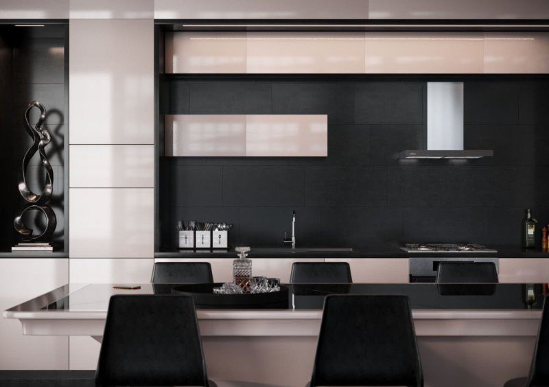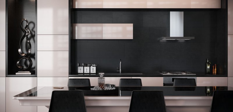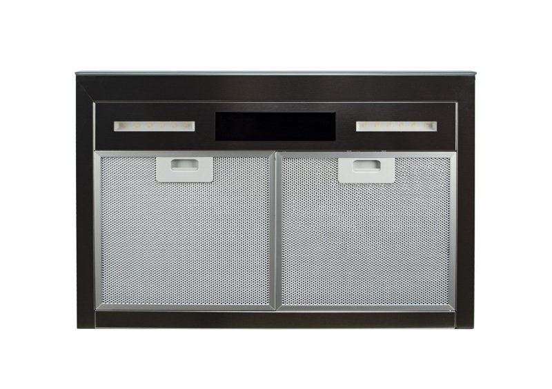 Выполнена из металла и стекла черного или графитового цвета, декоративная вытяжка выгодно подчеркнет интерьер любой кухни.