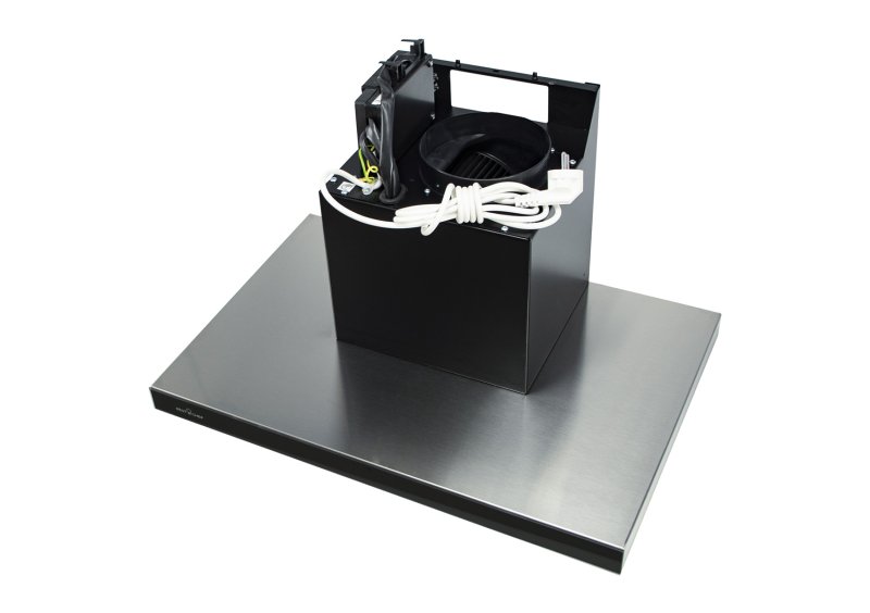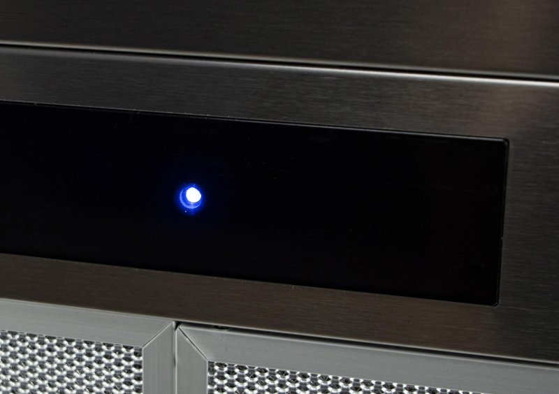 При ширине в 60 см она оснащена мощным мотором на 4 скорости. Вытяжка управляется как движением рукой, так и с помощью пульта ДУ.