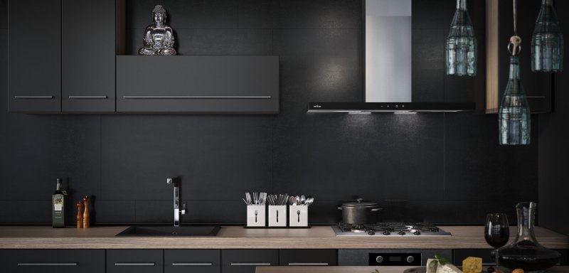 Уровень производительности данной модели высок: вытяжка способна достигать показателей 1100 м³/ч. Она может эффективно очищать воздух даже на самых больших кухнях, что актуально в условиях модных студийных помещений.