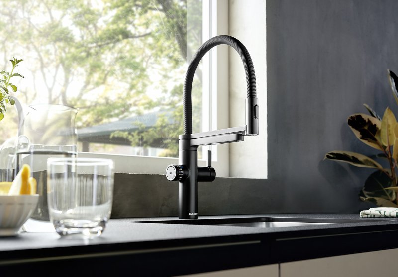 Описание Кухонный смеситель Blanco EVOL-S PRO FILTER чёрний матовий 526636