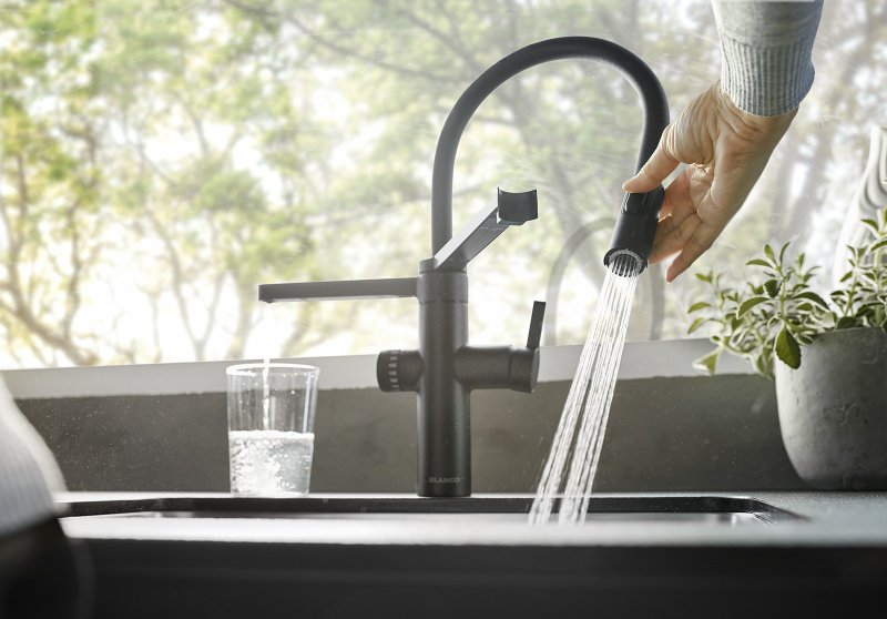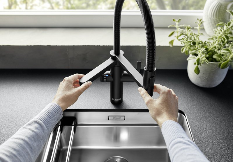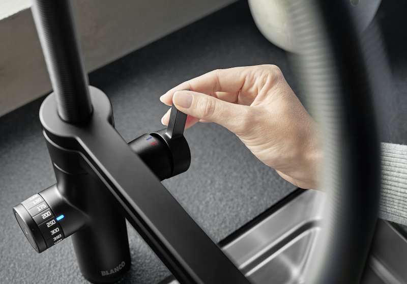 Совершенство – это когда все работает так, как нужно – смесители BLANCO EVOL-S Pro 526636 с подключением фильтра имеют практические функции, которые значительно облегчают повседневную жизнь на кухне и, таким образом, обеспечивают вам неповторимые впечатления от работы на кухне. Независимо от того, куда вы хотите налить воду: в стакан или графин, объем можно установить с помощью удобной круговой шкалы на левой стороне смесителя. На передней части управления находится встроенная сенсорная контактная точка. Достаточно легко нажать на этот элемент, чтобы включить подачу обработанной и очищенной воды. Это означает, что потребление воды можно регулировать не только экологически сознательно, но и в соответствии с ситуацией.