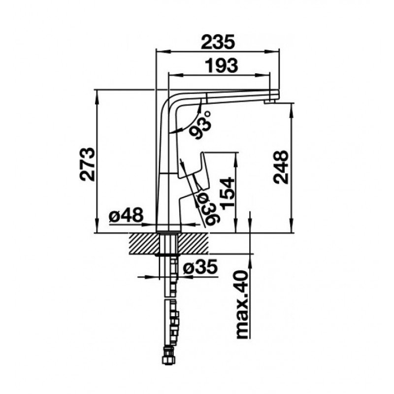 - Требуется отверстие под смеситель Ø 35 мм Керамический дисковый картридж Шланг выдвижного излива в металической оплетке Легкое подключение гибкими шла