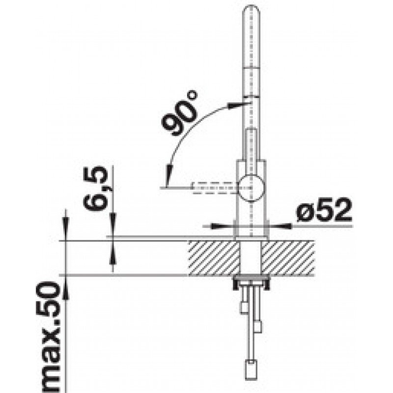 - Требуется отверстие под смеситель Ø 35 мм Шланг выдвижного излива с нейлоновой оплеткой Легкое подключение гибкими шлангами длиной 450 мм с гайкой ⅜“ Запатентованный рассекатель, уменьшающий отложения налета и воды Возвратный клапан, предотвращающий возврат воды Стабилизирующая пластина для бол