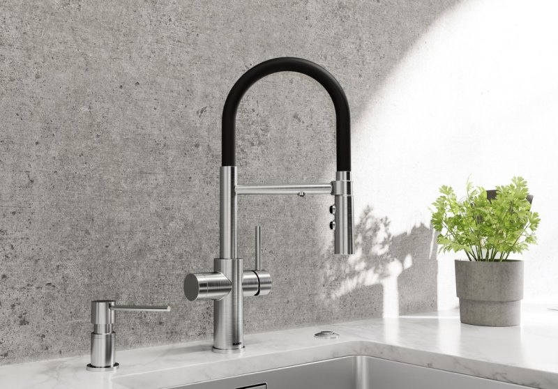 - Вода с лучшими вкусовыми качествами непосредственно из смесителя без компромиссов в дизайне.