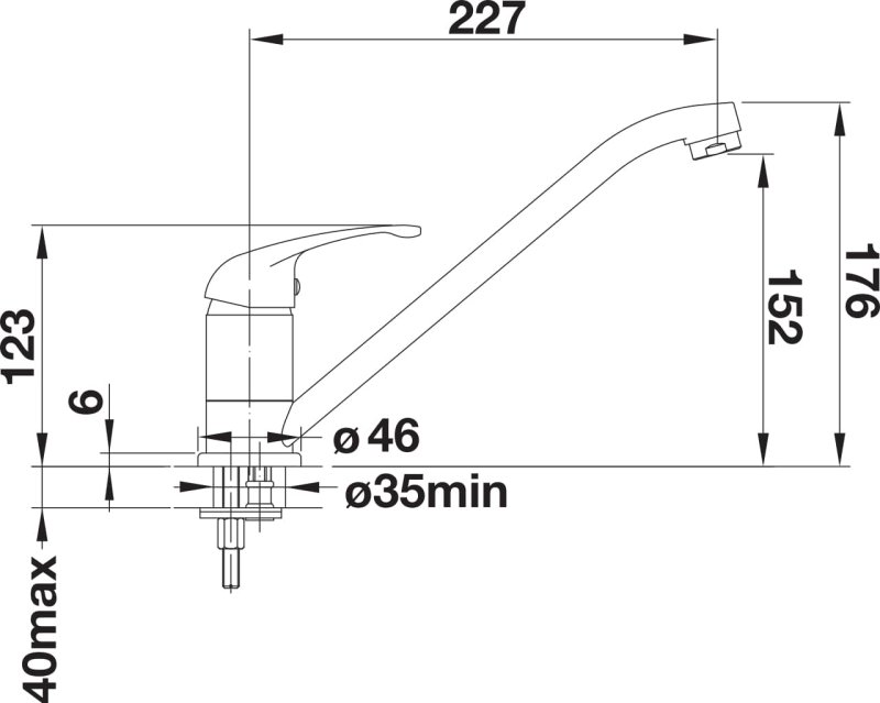 Требуется отверстие под смеситель Ø 35 мм