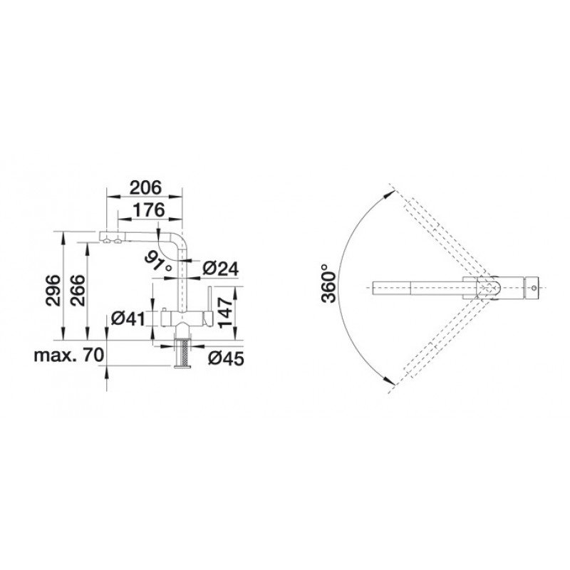- Излив, вращающийся на 360°, для большей функциональности