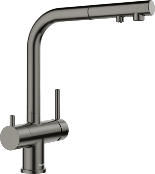 Чистая вода без примесей. Компания BLANCO представляет первый в мире смеситель для подключения фильтра с выдвижным изливом. Наиболее востребованные функции смесителя теперь доступны в одном уникальном предложении Blanco FONTAS-S II черный сатин сталь.