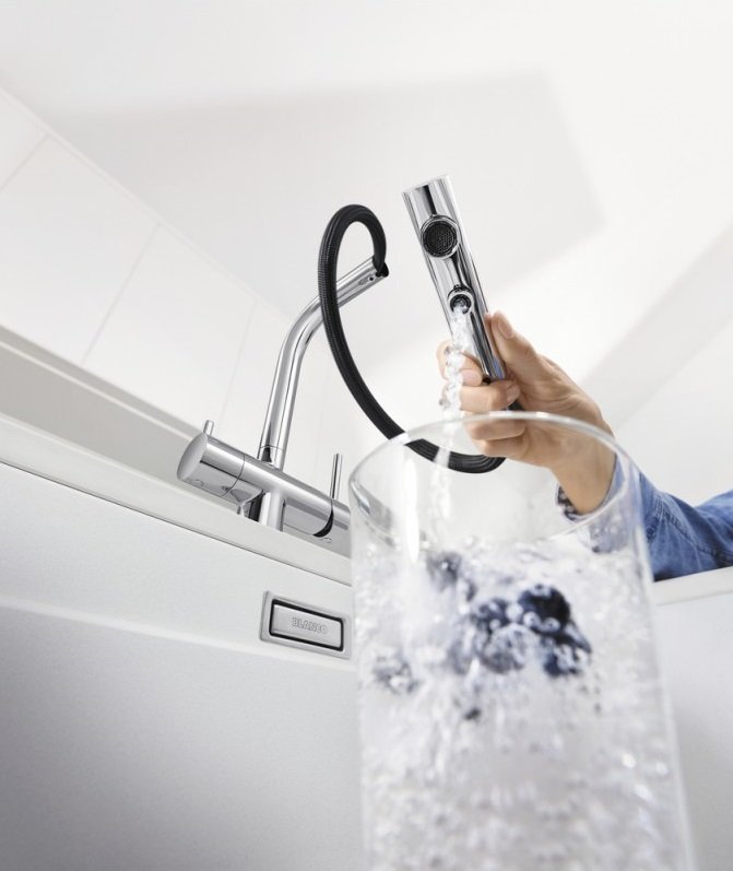 - Гигиеничный: отдельный излив с дополнительным носиком для фильтрованной воды — нет смешивания с водопроводной водой
