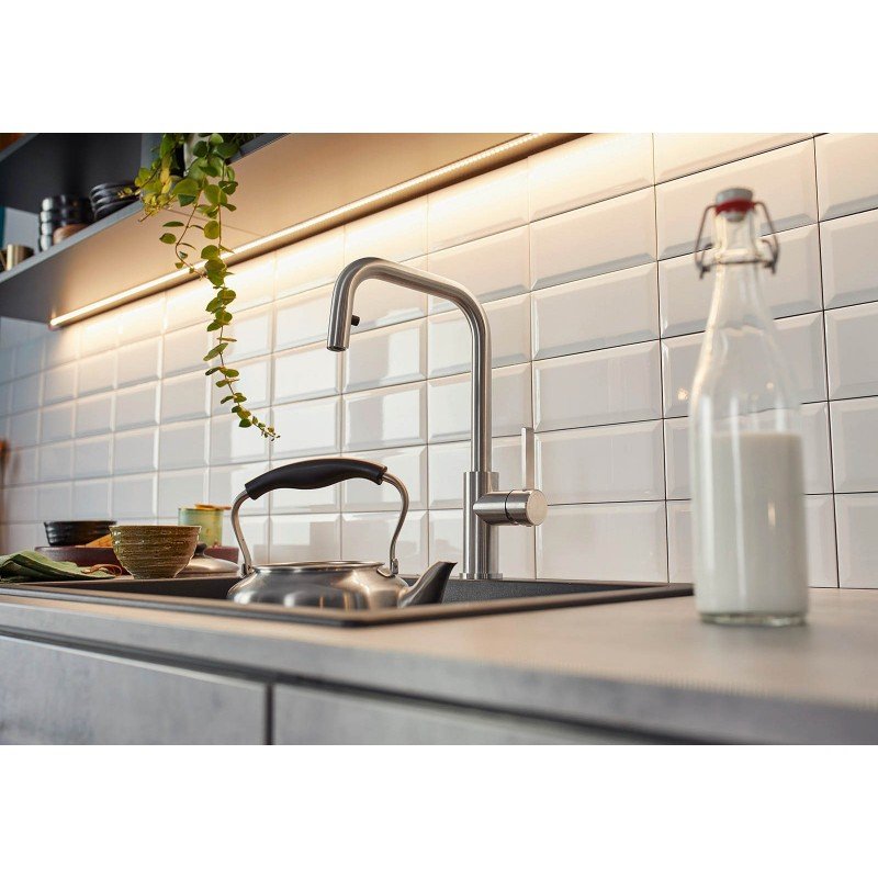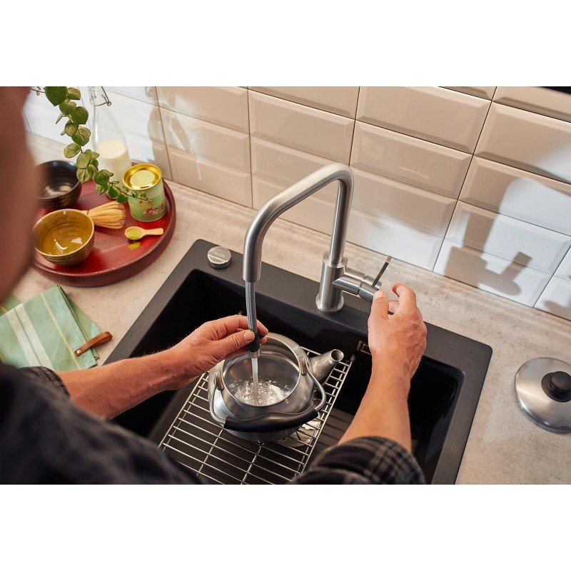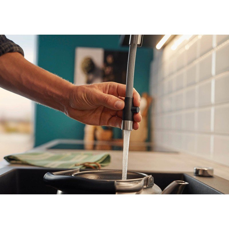 Смеситель Blanco JANDORA-S (526614) нержавеющая сталь — высокий изгиб подчеркивает изысканность отделки из матовой нержавеющей стали и позволяет легко наполнять кастрюли и вазы. Его конструкция также обеспечивает дополнительную свободу движения при установке у стен благодаря вертикальному нейтральному рычажному положению. А клиенты, которые ищут смеситель с удобным изливом, оценят скрытый выдвижной шланг.
