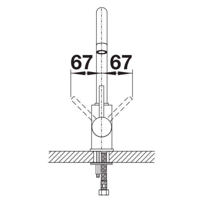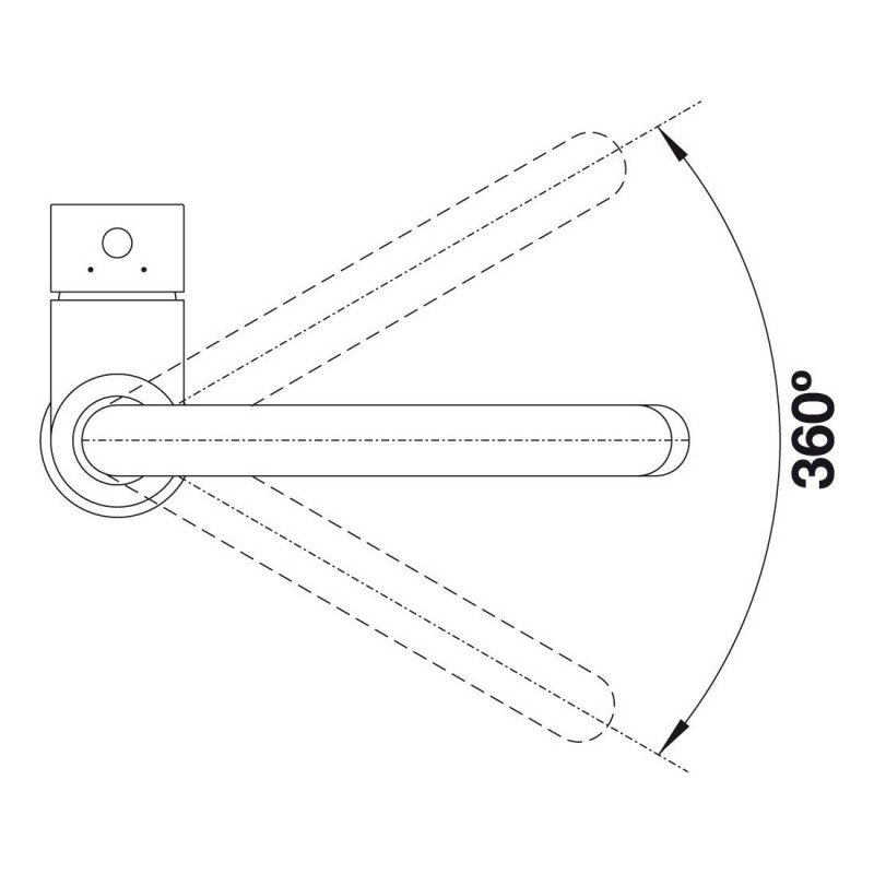 - Увеличенный радиус действия благодаря изливу, вращающемуся на 360°