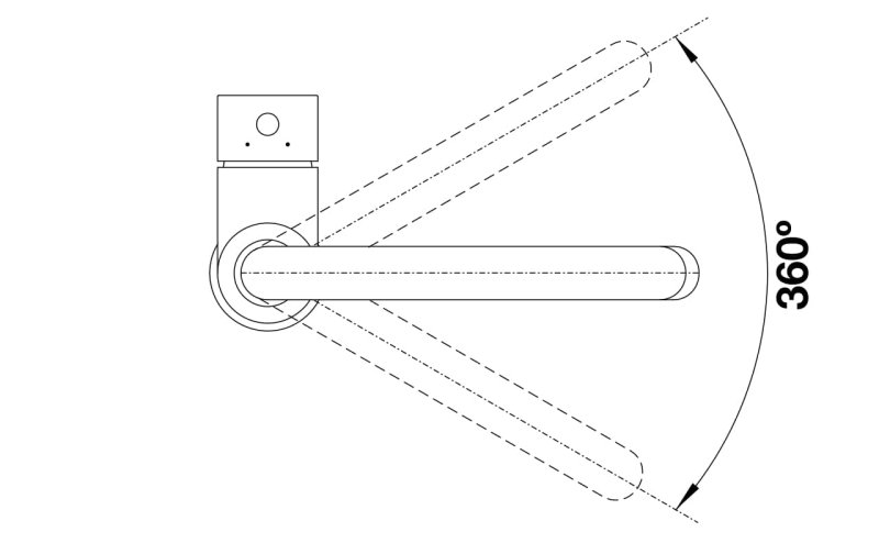 Увеличенный рабочий радиус благодаря изливу с поворотом на 360°