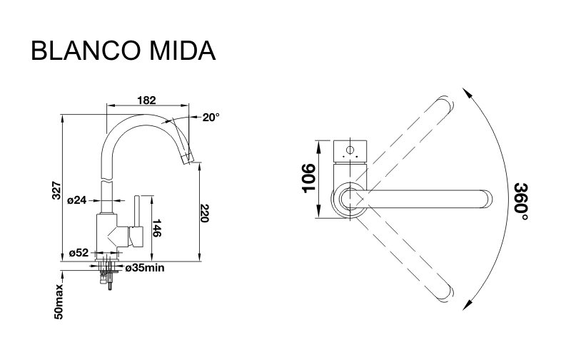 - Увеличенный радиус действия благодаря изливу, вращающемуся на 360°
