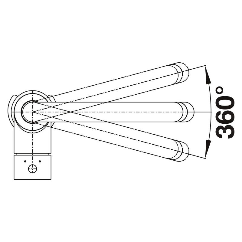 - Увеличенный радиус действия благодаря изливу, вращающемуся на 360°