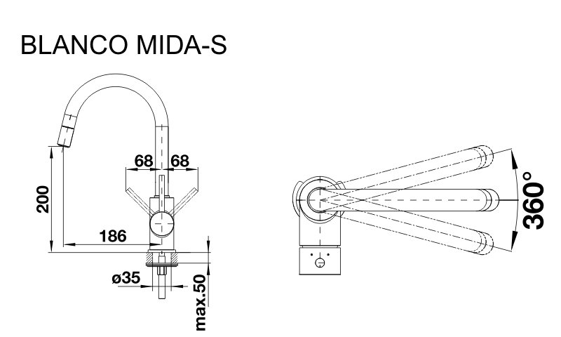 Характеристики Кухонный смеситель Blanco MIDA-S нежно белый 526968