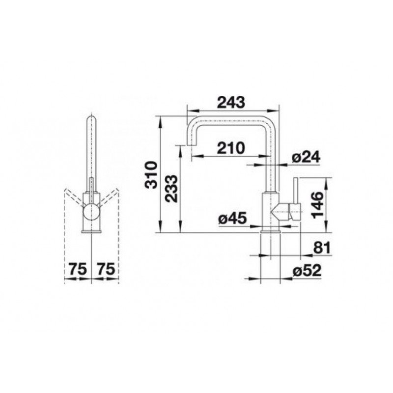 - Увеличенный радиус действия благодаря изливу, вращающемуся на 360°