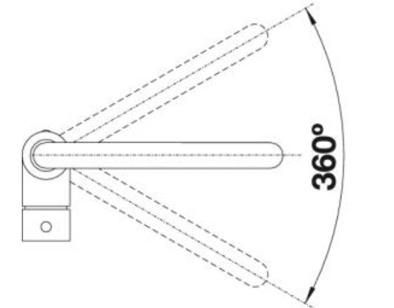 - Увеличенный радиус действия благодаря изливу, вращающемуся на 360°
