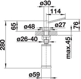 - Требуется дополнительное отверстие Ø 35 мм