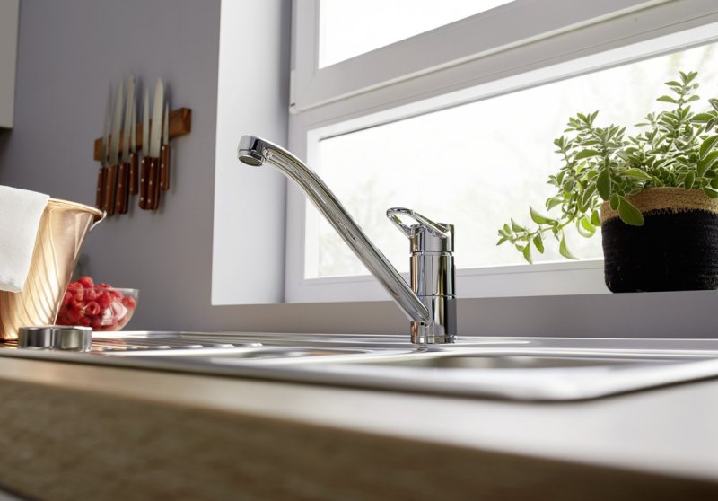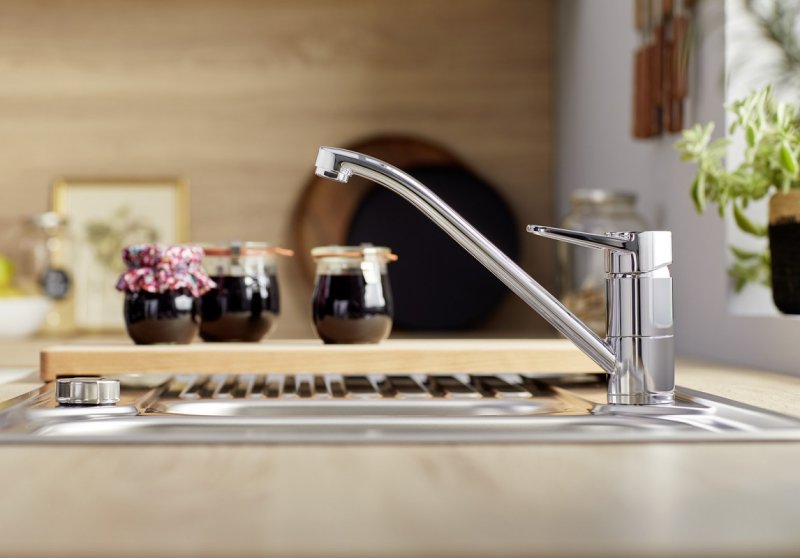 - Смеситель с одним рычагом для большего удобства управления и свободной планировки кухни