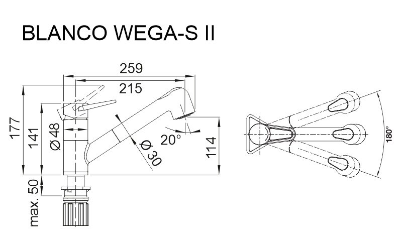 Характеристики Кухонный смеситель Blanco WEGA-S II вулканический серый 526983