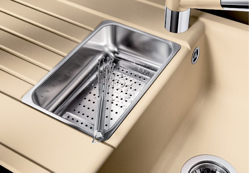 Blanco ZIA 6 S черный 526021 кухонная мойка выполнена из искусственного камня Silgranit PuraDur высокого качества и подходит для установки в кухонный шкаф шириной 50 см. Модель мойка оснащена большой прямоугольной чашей и просторным крылом с рельефной поверхностью для сушки посуды. Blanco ZIA 6 S черный, также оснащена малой чашей, которая может служить для удобной разморозки продуктов. А также в неё можно установить легко съёмный коландер из нержавеющей стали для промывки продуктов. Мойка для врезного монтажа является оборачиваемой, что позволяет расположить основную чашу согласно вашим предпочтениям. Глубина основной чаши данной модели мойки составляет 19 см, а дополнительной чаши 14 см. Модель ZIA 6 S 526021 производится на заводе Blanco в Германии и на нее распространяется официальная гарантия производителя в течение 5 лет.