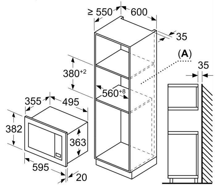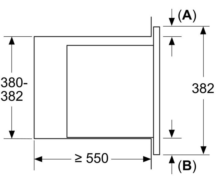 - Размеры ниши для встраивания: 380-382 x 560-568 x 550 мм ,