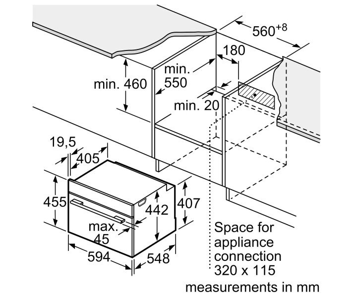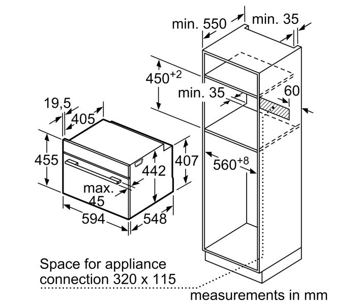 Электронные часы Автоматический выбор рекомендуемого уровня температуры с возможностью изменения Отображение текущей температуры контроль нагрева Вариант закрытия: soft closing Вспомогательная система приготовления блюд: функция Assist Быстрое разогревание Осветление: светодиодные лампы Возможность отключения внутреннего освещения Индикация низкого уровня воды в резервуаре Резервуар с водой находится в незаметном месте за дисплеем прибора Вентилятор охлаждения Дистанционное управление с помощью Home Connect. Очистка: