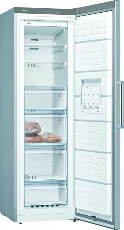 Морозильная камера Bosch GSN36VL30U – морозильная камера от немецкого производителя, компании Bosch. Она представляет собой стандартный однокамерный морозильник на 5 полок для хранения свежих продуктов. Общий объем такой камеры составляет 242 литра. Камера оснащена функцией Vita Control, которая поддерживает постоянную температуру благодаря интеллектуальным датчикам. Мощность замораживания камеры – 20 кг продуктов за 24 часа. Особенности устройства Bosch GSN36VL30U оснащена электронным контролером температуры, который высвечивается на панели управления. Такая морозильная камера имеет функцию No Frost, поэтому ее не нужно размораживать механическим способом. Также благодаря этому, иней и снег не намерзают на продуктах. Устройство имеет в своем основании инверторный компрессор, который работает более эффективно и имеет более стабильный температурный режим. Технические особенности Bosch GSN36VL30U оснащен дополнительными особенностями, среди которых функция быстрого охлаждения MultiFlow. ЕСО режим позволит экономить электричество в случае длительного отсутствия или неиспользования холодильника. Антибактериальный уплотнитель сделает возможным чистоту холодильника от болезнетворных бактерий. Детали Bosch GSN36VL30U можно купить по доступной цене, товар находится в средней ценовой категории. При повышении температуры внутри камеры холодильника – раздается звуковой сигнал. LED-подсветка в данной модели имеет особое значение – она находится по всей высоте морозильной камеры.