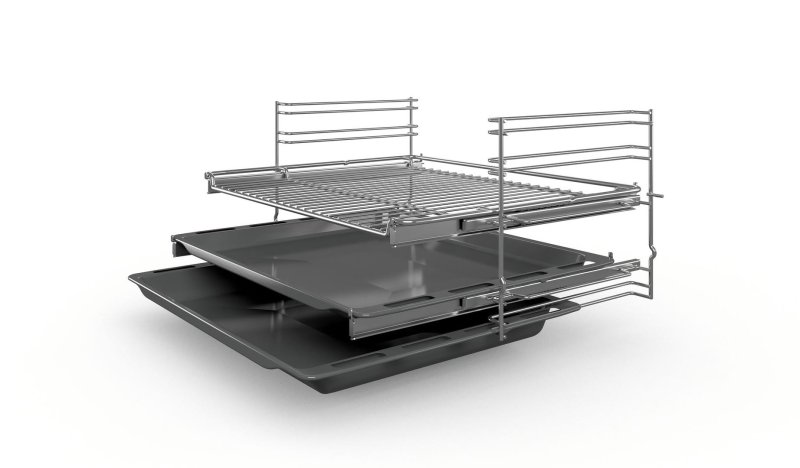 Телескопические системы выдвижения противней обеспечивают удобный и безопасный доступ к блюдам на нужном уровне.