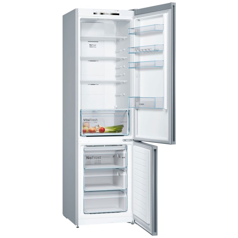 FreshSense: климат контроль Вашего холодильника. Постоянная температура в камере холодильника - решающий фактор в достижении длительного срока хранения продуктов. Датчики FreshSense постоянно контролируют и поддерживают температуру в холодильном и морозильном отделениях. Таким образом продукты будут находиться в идеальном состоянии, когда Вы захотите их приготовить. Защита от размораживания. Собираясь загружать много продуктов в морозильную камеру, активируйте функцию SuperFreezing. Она понижает температуру в морозильной камере, чтобы новые продукты быстро заморозились, а старые не начали таять и сохранили свой вкус. После стабилизации температуры функция SuperFreezing выключается автоматически. Устранение теплого воздуха в холодильной камере. Когда вы открываете холодильник, внутрь проникает теплый воздух, который может испортить продукты. Чтобы этого не произошло, активируйте функцию SuperCooling, которая обеспечивает быстрое охлаждение воздуха. Чтобы не потреблять много энергии, эта функция автоматически выключается спустя 6 часов, при желании вы можете выключить ее раньше. SuperCooling будет полезна, если вы также собираетесь загружать в холодильник много новой еды. Тогда обязательно перед этим активируйте функцию SuperCooling. Свежесть с первой до последней полки. Система MultiAirflow обеспечивает циркуляцию воздуха по всему холодильному отделению, тем самым устраняя проблему слишком пересушенных или чересчур замороженных продуктов. Больше никогда не размораживайте холодильник. NoFrost: забудьте про разморозку, благодаря идеальной защите от образования льда - это экономит время и усилия. VitaFresh: дольше сохраняет пищу свежей. Здоровый образ жизни никогда не был таким простым. Контейнер VitaFresh создает идеальные условия хранения для вашей пищи благодаря чрезвычайно низким температурам и регулируемой контроля влажности. Условия влажности в ящике можно регулировать, поэтому ваши фрукты и овощи дольше останутся свежими. Светодиодные светильники в холодильнике добавляют новую концепцию освещения, гарантируя равномерный обзор без бликов. Светодиодные лампы потребляют меньше электроэнергии, чем обычные, и служат в течение всего срока службы прибора.