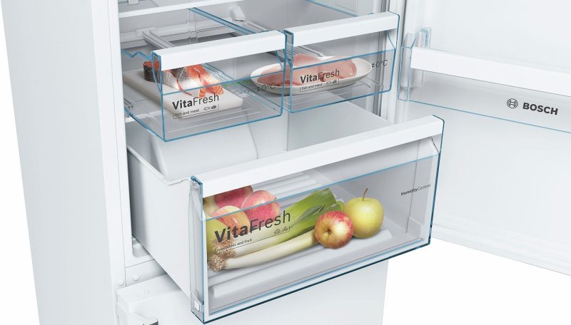 Система сохранения свежести VitaFresh plus обеспечивает идеальные условия для хранения рыбы, мяса, овощей и фруктов, сохраняя их свежими вдвое дольше. Холодильник с нижней морозильной камерой KGN39VW306. В этом холодильнике холодильное отделение находится прямо напротив вас, на уровне груди. В нижней части располагается просторная морозильная камера. Поскольку перегородка делит холодильник пополам, вам не придется наклоняться, чтобы достать продукты из холодильного отделения. Забудьте про разморозку холодильника. Благодаря нашим холодильникам с системой NoFrost вы сможете навсегда забыть про разморозку. В отличие от обычных холодильников содержащаяся в воздухе влага у холодильника NoFrost постоянно накапливается в центральном охладителе, который автоматически размораживается через определенные интервалы времени. Образующийся конденсат выводится из холодильника через трубку наружу в поддон, где затем испаряется. Таким образом, система NoFrost защищает холодильник не только от обледенения, но и избавляет от необходимости размораживать его вручную. Пусть ваш холодильник пахнет свежестью: AirFresh Filter. Фильтр Airfresh с антибактериальной защитой antiBacteria активно нейтрализует запахи внутри холодильника и отфильтровывает бактерии. Он встроен в систему вентиляции и препятствует смешиванию запахов, чтобы продукты сохраняли свой естественный вкус. Этот фильтр обеспечивает постоянную свежесть в течение всего срока службы холодильника. Защищает замороженные продукты от размораживания: функция SuperFreezing. Функция SuperFreezing обеспечивает быстрое замораживание новых продуктов, предотвращая размораживание содержимого морозильной камеры. В результате замороженные продукты сохраняют свой вкус даже при добавлении новых продуктов. Свежесть с верхней до нижней полки: Multi Airflow. Размещение продуктов в холодильнике может вызвать сложности: в некоторых отделениях они остаются свежими, в других – высыхают. Система MultiAirflow с вентилятором усиливает циркуляцию воздуха внутри холодильника и поддерживает равномерную температуру и влажность сверху донизу. Колебания температуры минимальны, сокращается время охлаждения – это помогает сохранить свежесть и вкус продуктов дольше. Полки из безопасного стекла SafetyGlass. Очень надежные и удобные полочки сделаны из прочного и легкого в чистке стекла. Также преимуществом таких полок является то, что при падении они не разлетаются на осколки, поэтому обеспечивают максимальную безопасность. FreshSense: климат контроль Вашего холодильника. Постоянная температура в холодильние - решающий фактор в достижении длительного срока хранения продуктов. Датчики FreshSense постоянно контролируют и поддерживают температуру в холодильном и морозильном отделениях. Освещение, что чувствует Ваше каждое движение. EmotionLight - мягкое светодиодное освещение внутреннего пространства с плавным затуханием и зажиганием. Больше комфорта в Вашем холодильнике. Специальная подвесная металлическая хромированная решетка предназначена для хранения любых бутылок значительно сэкономит место в вашем холодильнуку. А технология EasyAccess поможет с легкостью доставать и переставлять полки на любой уровень Eco-friendly холодильник. Особая технология не только сохраняет окружающую среду, но и существенно экономит ресурсы и улучшает Вашу жизнь.