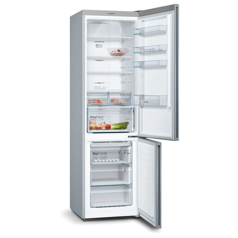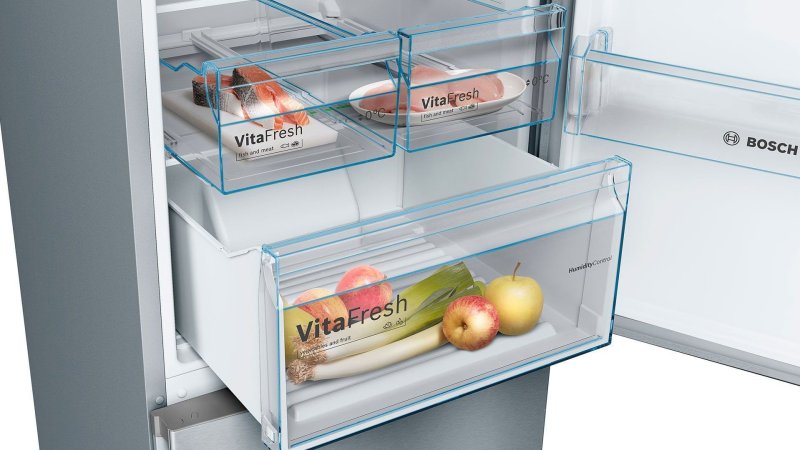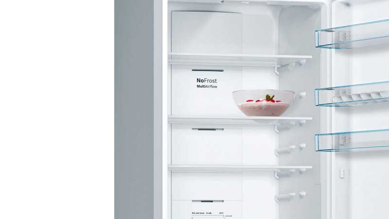 Система сохранения свежести VitaFresh plus обеспечивает идеальные условия для хранения рыбы, мяса, овощей и фруктов, сохраняя их свежими вдвое дольше. FreshSense: климат контроль Вашего холодильника. Постоянная температура в камере холодильника - решающий фактор в достижении длительного срока хранения продуктов. Датчики FreshSense постоянно контролируют и поддерживают температуру в холодильном и морозильном отделениях. Таким образом продукты будут находиться в идеальном состоянии, когда Вы захотите их приготовить. Защита от размораживания. Собираясь загружать много продуктов в морозильную камеру, активируйте функцию SuperFreezing. Она понижает температуру в морозильной камере, чтобы новые продукты быстро заморозились, а старые не начали таять и сохранили свой вкус. После стабилизации температуры функция SuperFreezing выключается автоматически. Устранение теплого воздуха в холодильной камере. Когда вы открываете холодильник, внутрь проникает теплый воздух, который может испортить продукты. Чтобы этого не произошло, активируйте функцию SuperCooling, которая обеспечивает быстрое охлаждение воздуха. Чтобы не потреблять много энергии, эта функция автоматически выключается спустя 6 часов, при желании вы можете выключить ее раньше. SuperCooling будет полезна, если вы также собираетесь загружать в холодильник много новой еды. Тогда обязательно перед этим активируйте функцию SuperCooling. Свежесть с первой до последней полки. Система MultiAirflow обеспечивает циркуляцию воздуха по всему холодильному отделению, тем самым устраняя проблему слишком пересушенных или чересчур замороженных продуктов. Больше никогда не размораживайте холодильник. NoFrost: забудьте про разморозку, благодаря идеальной защите от образования льда - это экономит время и усилия. Светодиодные светильники в холодильнике добавляют новую концепцию освещения, гарантируя равномерный обзор без бликов. Светодиодные лампы потребляют меньше электроэнергии, чем обычные, и служат в течение всего срока службы прибора.