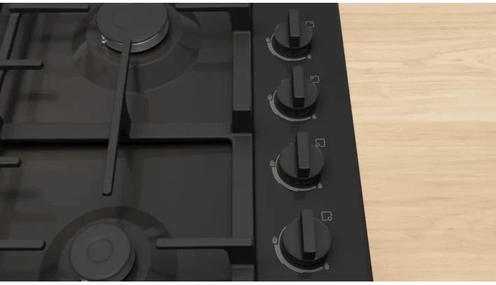 Serie | 2 Газовая варочная панель Bosch PBH6C6K90R шириной 60 см с боковым расположением переключателей: выбранными конфорками можно удобно управлять с боковой панели.