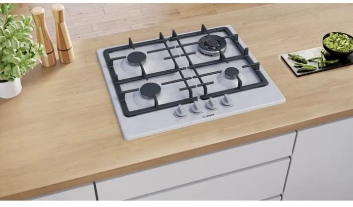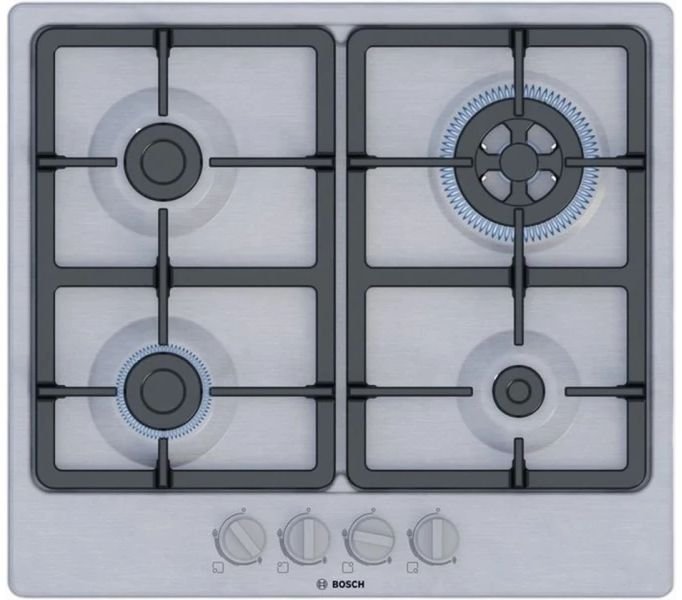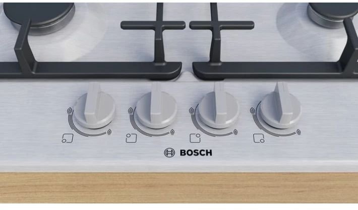 Serie | 4 Газовая варочная панель Bosch PGH6B5K90R шириной 60 см из нержавеющей стали: высокое качество и премиальный дизайн для более длительного наслаждения приготовлением пищи.