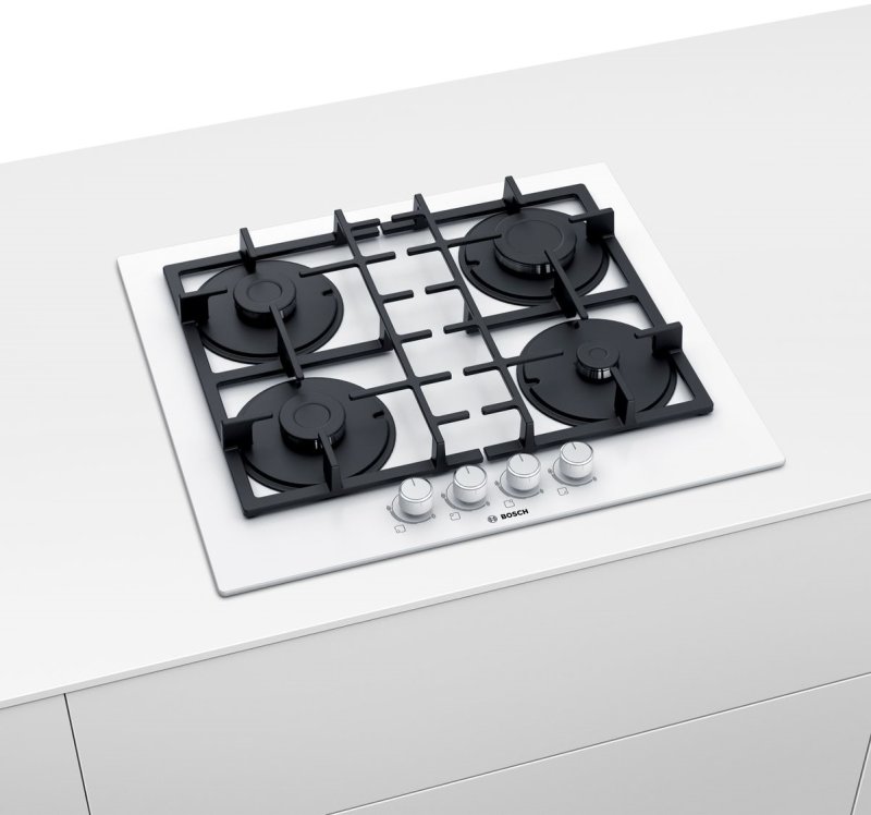Стильная газовая варочная поверхность Bosch PNP6B2O90R может встраиваться в удобном месте на кухонной рабочей поверхности. Она служит для регулярного использования при приготовлении разнообразной домашней пищи. Модель выполнена из закалённого стекла белого цвета. На ней установлены 4 конфорки: экономичная, две стандартные и одна повышенной мощности. Каждая из горелок оснащена термоэлектрической защитой от утечки газа и функцией автоматического электрического поджигания. Две прочные чугунные решётки обеспечивают устойчивость посуды при готовке и перемещении по поверхности прибора. Газовая варочная поверхность Bosch PNP6B2O90R - необходимый кухонный атрибут в семье, где готовят и любят еду домашнего приготовления.