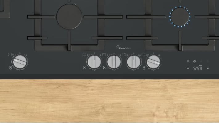 Варочная поверхность изготовлена из черного закаленного стекла, которое легко очищается и выглядит эффектно. Пять отдельных чугунных решеток, пригодных для мытья в посудомоечной машине, обеспечивают стойкость любой посуды. Автоматический электроподжиг в ручках, газ-контроль, металлические съемные поворотные переключатели, подсветка панели управления, таймер и даже дисплей — все это создает впечатление совершенства в каждой детали.