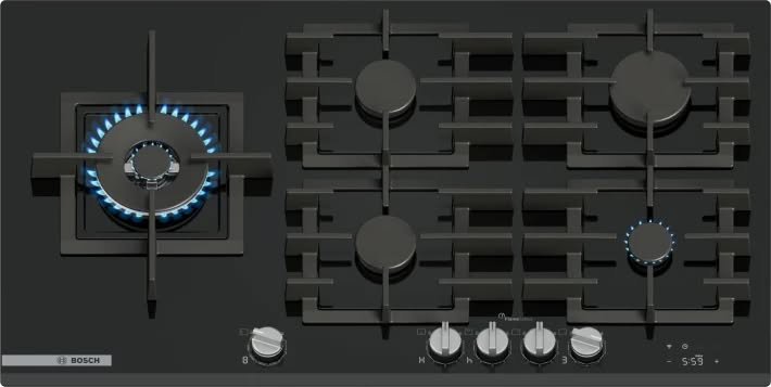 Газовая варочная поверхность Bosch Serie 8 PRS9A6H40 – это премиум-решение для современной кухни, сочетающее стиль, функциональность и инновационные технологии. Широкая модель с пятью конфорками позволяет готовить одновременно несколько блюд, а большая центральная WOK-конфорка мощностью 5000 Вт станет идеальным выбором для блюд азиатской кухни или приготовления больших сковородок.