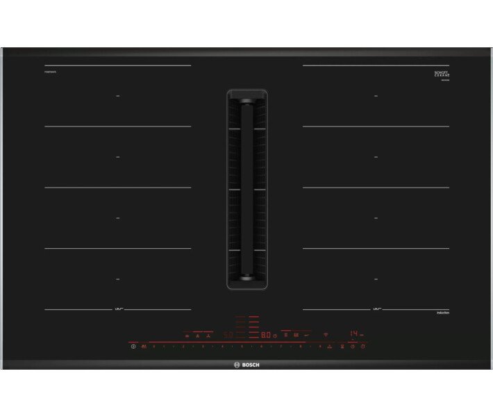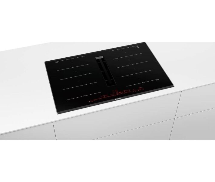 Современная индукционная варочная поверхность Bosch PXX875D67E оснащена вентилятором-вытяжкой, который активно поглощает все запахи и маслянистые пищевые пары. Индукционная варочная панель имеет стильный лаконичный вид в черном цвете с глянцевой фактурой и скошенными угловыми поверхностями. Последнее упрощает уход за варочной поверхностью, т.к. нет острых углов, под которые забивается грязь.