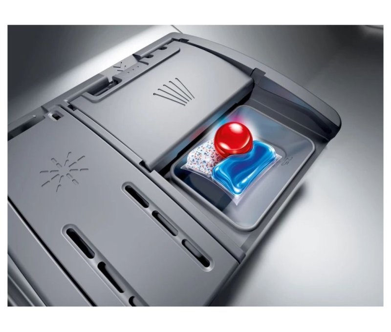 Средство для мытья размещается в диспенсере сверху на дверце. Перед началом процесса мытья он падает в специальную кювету в верхнем коробе, что гарантирует его тщательное растворения благодаря четкому направлению на него струй воды.
