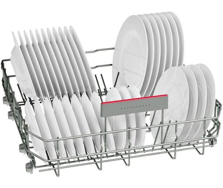 Вместительный верхний короб можно регулировать по высоте в целом на 5 см между тремя положениями простым движением руки — благодаря системе Rackmatic. Тарелки для пиццы или фужеры на высокой ножке — эта система позволяет очень гибко создать дополнительное место для высоких предметов посуды в верхнем или нижнем коробе.