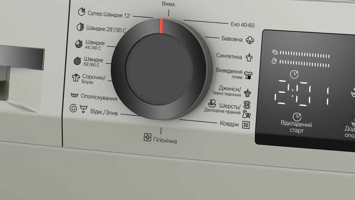 Сенсорные кнопки выбора дополнительных опций TouchControl моментально реагируют на Ваше прикосновение и делают управление стиральной машиной удобным и чрезвычайно приятным