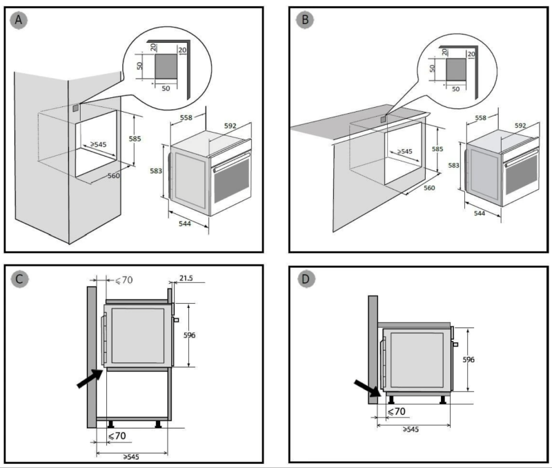 Габариты ниши для встраивания (ВxШxГ)